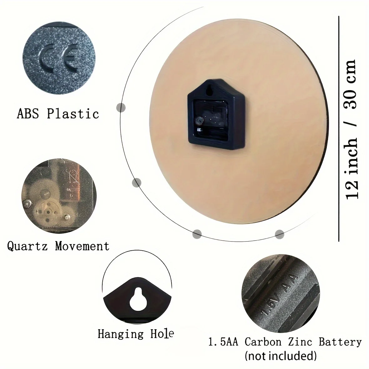 Round Wooden Wall Clock. Material of the wall clock: wooden. There are two sizes available, 8 inches and 12 inches. The display is 2D Flat, not 3D Flat, Battery Operated (AA Not Included)